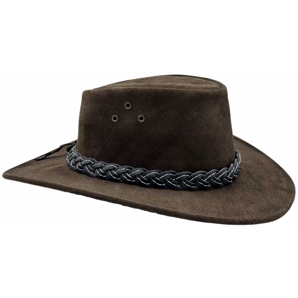Hnědý kožený semišový klobouk Wallaroo spojuje klasický australský styl s vysokým výkonem, který oceníte v jakémkoli počasí. Jeho široká krempa o šířce 8 cm nabízí vynikající ochranu proti slunci, což vám zajistí komfort i během horkých letních dnů. Díky ochraně UPF 50+ budete mít jistotu, že vaše pleť je chráněná před škodlivými UV paprsky, a to s maximálním stylem.