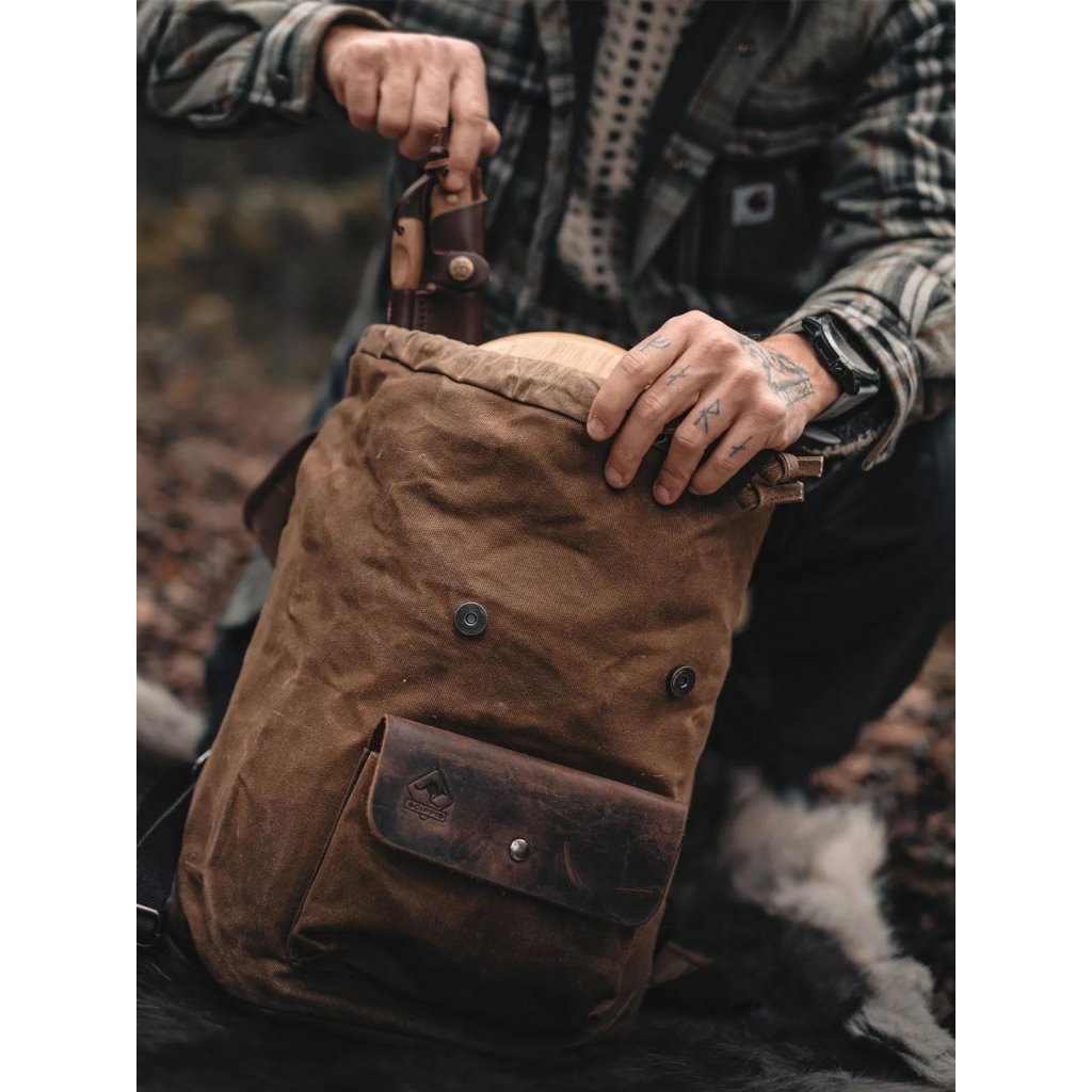 Robustní batoh z voskovaného canvasu a kůže ve vintage stylu. Praktický, nadčasový a připravený na všechna dobrodružství.
